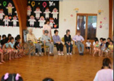 近隣の老人施設のお年寄りや地域の方々との交流を通して、子どもたちはさまざまな人との関わりを経験します。